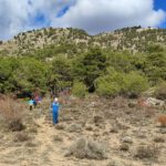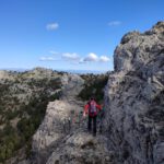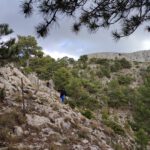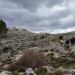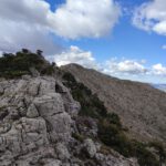 Llegaremos a la aldea de Fuente de la Carrasca desde Cañada de la Cruz. Nada mas empezar veremos una pequeña fuente utilizada para el ganado, desde aquí comenzaremos a subir por el bosque siguiendo algunos hitos, hasta llegar a un collado con grandes formaciones rocosas con formas conocidas (Piedra de la Moneda) y no tan conocidas (Piedra de los Enamorados 2031m, opcional), cresteando y disfrutando de maravillosas vistas hacia la Sagra y hacia la propia Sierra hasta llegar al primer pico El Calderón (2071m) seguido de la Atalaya (2083m), el techo albaceteño. Continuaremos cresteando hasta el Pico de las Cabras (2080m) con vértice geodésico. Perderemos algo de altitud pasando por un pequeño destrepe hasta llegar a una valla dónde disfrutaremos de maravillosas vistas de la propia Sierra y de grandes panorámicas hacia el interior de Albacete. Pasaremos por la Piedra la Lobera (2018m, Opcional) para alcanzar nuestra ultima cima El Cagasero (2043m), desde dónde comenzaremos la bajada con pendiente y piedra suelta que nos hará extremar precauciones. Finalmente llegaremos a una pequeña rambla atravesando el bosque hasta llegar a un Cortijo, dónde seguiremos una pista que nos llevará al punto de inicio.