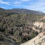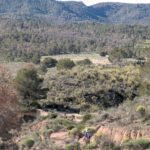 Continuamos descendiendo por la loma hasta la cañada de las Oliveras, un amplio valle en el que se conservan muros de piedra seca y terrazas de cultivo tradicional. En esta parte del recorrido, el sendero gira hacia el noreste y bordea el margen del Barranco Blanco, sin llegar a descender a su fondo. La erosión ha modelado en este tramo formaciones muy características sobre los estratos arcillosos, claramente visibles desde la senda.