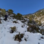 Dejaremos los coches por un camino forestal pegado a la carretera que viene de Barranda para comenzar la subida por su ladera este. Una subida montañera con apenas sendas y desnivel considerable que requiere cierta experiencia en este tipo de terreno. Llegaremos a un primer collado que seguiremos para después realizar otra subida hasta el vértice geodésico. La bajada será progresiva, con algunas sendas e hitos que nos guiaran de vuelta a los coches.