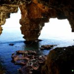 Iniciamos esta fantástica actividad visitando la preciosa “Cova dels Arcs”, cavidad que comunica con el canal submarino del río subterráneo del Moraig o “Riu Blanc”, surgencia submarina de agua dulce salinizada por la que descarga el acuífero de Benissa, justo debajo de la espectacular “Falla del Riu Blanc”, fractura que hundió en el mar las rocas de la Serra de Llorença provocando un gran escalón, hacia donde nos dirijiremos a continuación por un estrecho y vertiginoso sendero. La vista de esta gigantesca fractura y las agitadas aguas del Riu Blanc son un auténtico espectáculo de gran belleza natural.