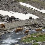En esta época, la montaña muestra una de sus caras más seductoras. El deshielo transforma el paisaje: los neveros se tornan esculturas efímeras, aparecen túneles de nieve sobre los arroyos, y el agua cobra protagonismo en todas sus formas —cascadas, ríos crecidos, y pequeñas lagunas temporales que reflejan el cielo de primavera.