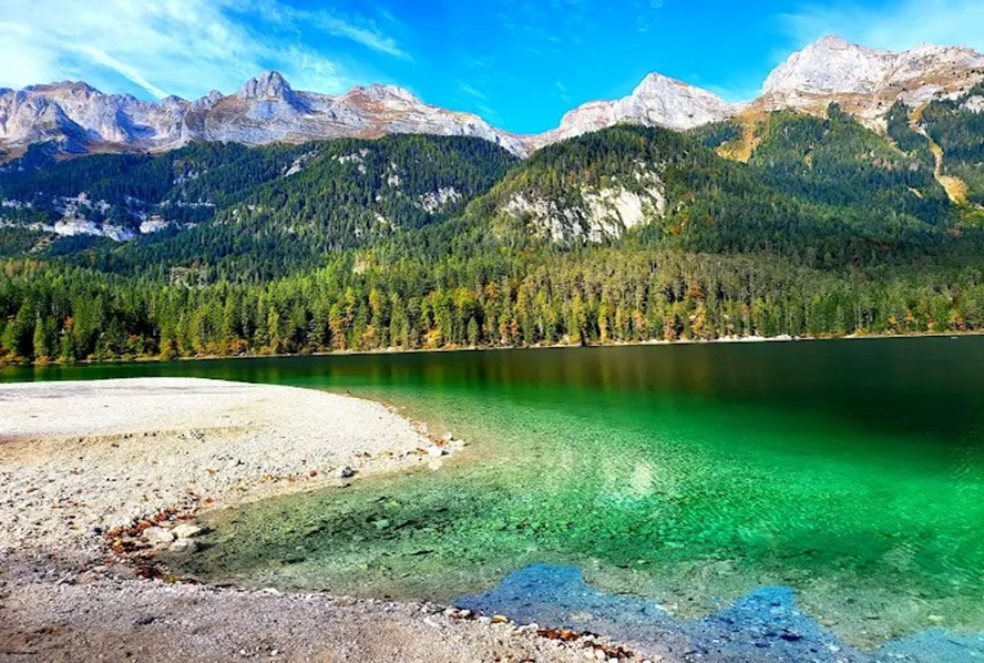 Otro de los imprescindibles en el Parque Adamello Brenta es el lago Tovel, circundado por espesos bosques que se reflejan en sus aguas. Es el lago más grande del parque a pesar de su altitud (1.178 m) y tiene una superficie de 360.000 m². Fue conocido como el “lago rojo” por el color del agua durante el verano debido a una especial floración del alga llamada Tovellia sanguinea, fenómeno que no se ha manifestado desde 1964 y actualmente sus aguas varían del azul claro a increíbles sombras de verde. Esta auténtica joya natural es el inicio y final de la excursión de hoy, un recorrido circular (6 h) que asciende por el Val Strangola hasta las casas pastoriles de Malga Quenta y el paso Termoncello (1850 m), y regresa por el valle Maria Flavona junto al río Trecena, ofreciendo una magnífica vista de la cascada que baja del circo glaciar Marga Pozzol (1.632 m) a la vez que impresionantes vistas de la imponente cara norte de la Cima Pietra Grande que araña los tres mil metros de altitud. HOTEL (MP: desayuno y cena).