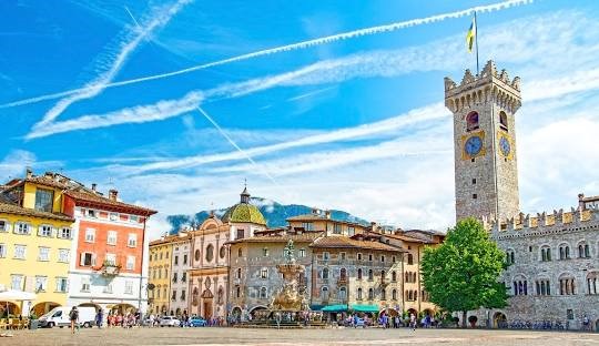 Ya hemos conocido la espectacularidad del “paisaje de montaña” del Trentino y hoy vamos a conocer la espectacularidad del “paisaje arquitectónico” de su capital, Trento, denominada splendidum municipium por el emperador Tiberio. Asentada a orillas del río Adigio y rodeada por montañas casi pegadas al centro histórico, dispondremos de todo el día para descubrir, sin prisas, sus tesoros artísticos que testimonian su gran relevancia histórica: ciudad romana de importancia estratégica por su ubicación junto a los Alpes –sugerimos visitar el Spazio Archeologico Sotterraneo (SASS)–, sede episcopal desde el siglo IV, capital del ducado de Trento y sede del famoso Concilio (1545-1563) que definió los principios de la Contrareforma. Trento conserva su Duomo original, mezcla de varios estilos, abierto a una preciosa plaza con pórticos que acogen cafés donde sentarse a contemplar el discurrir de la ciudad, como si de un teatro se tratara. Tampoco podemos perdernos el magnífico Castillo del Buonconsiglio, del siglo XIII y reconstruido en 1440: aunque se encuentra dentro de las murallas de la ciudad, el castillo tiene sus propias murallas, reforzadas por algunos bastiones semicirculares, y merece la pena visitar su interior con preciosos frescos, entre ellos los de la Torre del Águila, uno de los ejemplos más notables del arte gótico europeo. HOTEL (MP: desayuno y cena).
