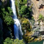 Desde el hotel por la bajada del Molino tomamos el Camino de las Fuentes. Pasamos junto a la Fuente de Arriba antes de llegar al primero de los Gorgos de hoy, el Gorgo Catalán. Continuamos hasta el manantial de la Fuente Negra, bellísima y frondosa área recreativa cuyas aguas alimentan el Gorgo Catalán. Regresamos sobre nuestros pasos para ir hasta la céntrica Fuente de Santa María y bordeando la Acequia Madre, llegamos a los 136 escalones de bajada que dan acceso a la Playa Continental del Gorgo de la Escalera. Los subimos ahora para ir hasta el Gorgo Gaspar y su pequeña pero acogedora área recreativa y de nuevo bajada hacia la espectacular Cascada de los Vikingos. Ahí nos tocará cruzar el río con el agua de la cascada casi literalmente cayéndonos encima por lo que cambiaremos las zapatillas de montaña por los escarpines o calzado de agua y protegeremos las mochilas, móviles… Una empinada cuesta nos lleva en un casi constante sube y baja a la Cascada del Salto, espectacular y bellísima caída de agua del Gorgo de la Escalera. El regreso se hace cruzando nuevamente la cascada. En cuanto al baño, se verá una vez allí el lugar más idóneo.