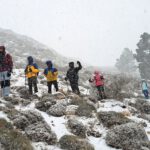 La tarjeta federativa en la mochila, con abundante agua. Ropa de abrigo apropiada al tiempo (estamos en invierno) y al lugar, chaqueta con membrana impermeable, botas o zapatillas de montaña en buenas condiciones.