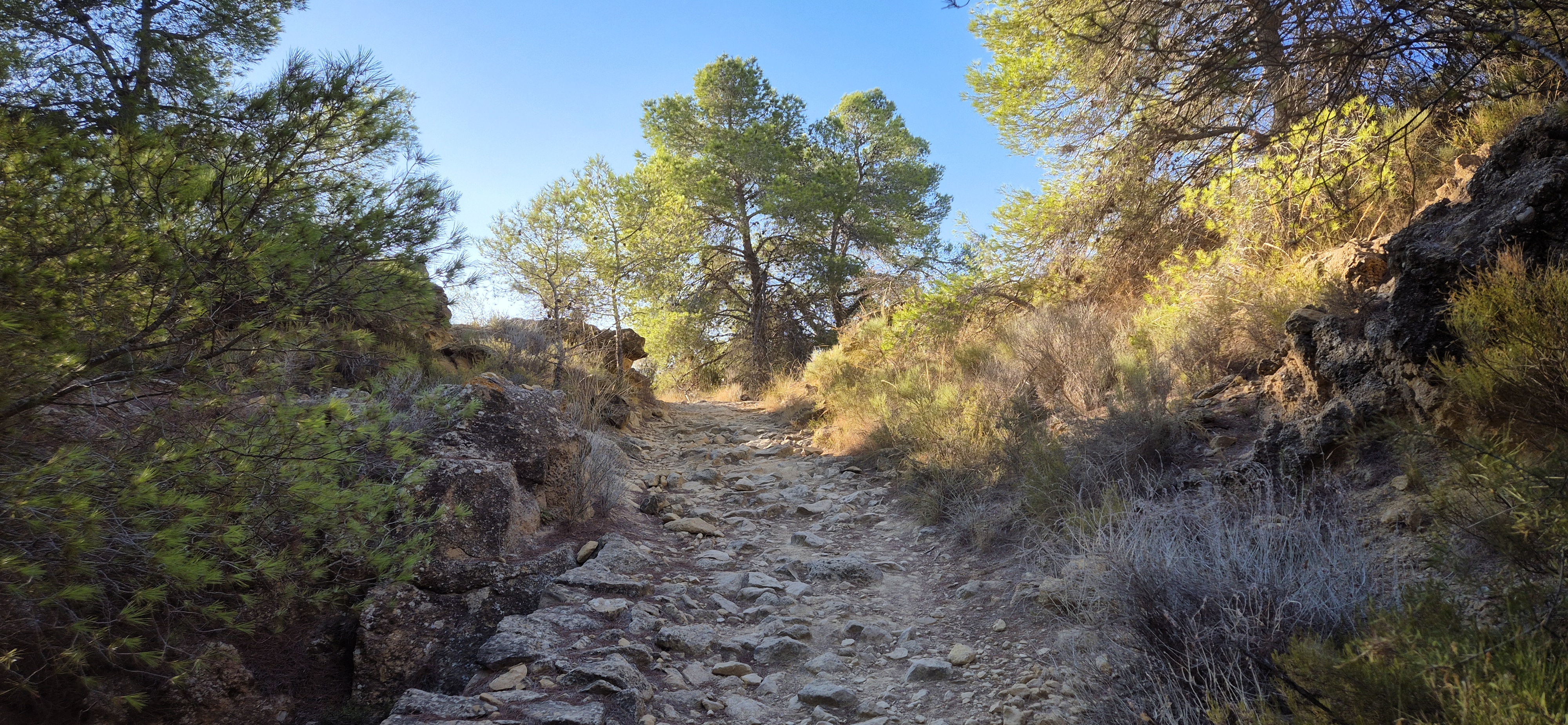 Comenzaremos nuestra ruta desde la valla que impide el paso a los coches continuar por el Camino de los Puros. Nos adentraremos unos metros por la pista del Camino de los Puros, hasta tomar una senda a la izquierda que, en ligero ascenso, nos llevará a la comúnmente conocida Senda Bonita. Esta senda se incluye en el PR-MU 23, conocido como Sendero de Antonio Pérez Nortes.