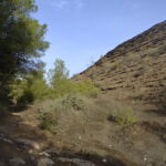 En esta etapa recorreremos 16 km y haremos 750m desn+ y 900m den- aprox. de los 70 km y mas de 5000m desnivel+ que hay en total y que hace muchos años realicé en un solo fin de semana haciendo vivac en San Julián, pero que esta vez he decidido hacerla en etapas muy separadas y con tranquilidad, para saborear cada tramo al máximo, disfrutando de sus tramos de costa con impresionantes calas, playas y acantilados; y con sus tramos de interior con sus contrastes explosivos de bosque, formaciones rocosas, morras y montes casi abandonados. Comenzaremos desde donde acabamos la Etapa 1, en el Parking del Monte de las Cenizas, pero en vez de ir hacia este monte, iremos para el otro lado siguiendo su ancha y cómoda pista, para enseguida desviarnos hacia Peña del Águila, uno de los 3 montes del Parque Regional de la costa cartagenera, quizás el menos conocido, pero no por ello dejará de sorprendernos con su pequeño bosque, sus extrañas formaciones rocosas, sus impresionantes vistas y sus peculiares contrastes al estar entre bosque mediterráneo y montes mineros con sedimentos multicolores. Después de hacer cumbre, bajaremos hacia la Sierra Minera, siguiendo un buen tramo de su ancha pista por debajo de sus numerosos molinos de viento, desviándonos en dirección a la Sierra de la Fausilla, pasando por un pequeño tramo de carretera para tomar una antigua pista minera que baja a la rambla del Gorguel, donde pasaremos lo mas rápido posible cerca de su planta de residuos hasta alcanzar una pista que nos llevará directos a la Sierra de la Fausilla, la cual subiremos a su punto más alto La Morra Alta por su ladera del noreste, para cautivarnos con sus magníficas vistas de acantilados y lomas abruptas a un lado, al fondo sur asoma Cartagena, y al otro lado la ciudad de Escombreras, impactante por sus refinerías, tanques, chimeneas. Bajaremos por la misma senda.
