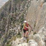 Desde la cara oeste ascenderemos por la senda Lin, por una repisa donde nos ayudaremos de un cable de acero, después de pasar el paso de la lagartija llegaremos hasta la cima, continuaremos por la cuerda en dirección a los molinos para bajar a la Umbría de la Jimena donde cogeremos una bonita senda para llegar a los coches.