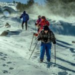 Mochila mediana en la que llevar lo habitual para una excursión montañera de un día. Piolet y crampones. Agua, bebida y comida propia (bocata) para el sábado. Gorro, gafas de sol, protector solar y labial. Para dejar en el hotel maleta o mochila grande con las pertenencias de cada cual. Ropa de frío. Botas de montaña, polainas (su hubiera mucha nieve), guantes, forro polar, cortavientos, bastones.