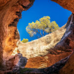 Ruta circular que haremos en sentido contrario a las agujas del reloj. Desde el parquin de la Casa del Guardia nos dirigimos a levante, para pasar por el Arabilejo y luego junto a las pinturas rupestres (protegidas) e ir después a la gran Cueva Horadada. Desde allí iniciaremos por senda el ascenso hasta la cima, pasando por un bonito sendero entre pinos y encinas. El descenso continúa hacia poniente, bajando a la estrecha Cueva del Tesoro y el punto de inicio, donde podemos hacer la comida.
