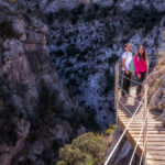 Al final de la pandemia fuimos a las recién inauguradas Pasarelas Colgante de Relleu sobre el antiguo Pantano del siglo XVII. Le llaman el pequeño Caminito del Rey de Alicante. Las pasarelas no tienen mucha longitud, cerca de doscientos metros., aunque se han realizado algunas ampliaciones y mejoras. Transcurren sobre un llamativo desfiladero calizo. Nosotros vamos a realizar un itinerario mayor, por el Camino de los Labradores, para disfrutar de Relleu y su entorno plenamente, como hicimos en nuestra primera ocasión. Es una ruta fascinante. Tenemos confirmadas 20 plazas, que podemos ampliar. Entraremos como grupo. Se pagan 3.50 euros por persona. Hay que reservar para participar en la actividad.