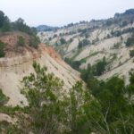 Al otro lado de la pista seguimos por el PR- MU 52 en descenso por la derecha, cruzamos Barranco Blanco, no seguimos por el sendero que asciende enfrente, sino que continuamos por la derecha, vamos ascendiendo y separándonos del lecho del barranco, cortamos rectos la pista a la que accedemos después, para continuar por sendero de cazadores, enlazamos con un ramal de la misma pista, nos conduce al punto de bajada a la Rambla de Los Bonetes por traza senderil pronunciada.
