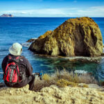 Mochila con agua, chubasquero, alimentos para picar y comer. Protector solar y labial. Gorra y gafas de sol.