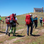 Mochila con agua, chubasquero, alimentos para picar y comer. Protector solar y labial. Gorra y gafas de sol. Bastones.